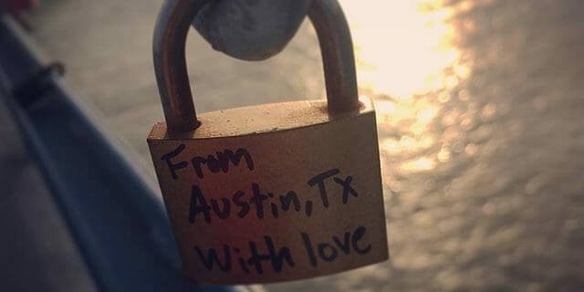 A lone love lock Andrew noticed in Bonn this summer. From home! #ATX #lovelocks #makelovelocks