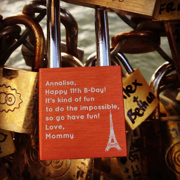 I was able to make our trip to #Paris and my daughter’s (@sillyagdoll) birthday that much better thanks to the handy work of @makelovelocks #makelovelocks. #pontdesarts Thanks to Instagram user @aishamd for the submission.