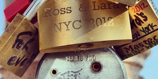 Love lockdown on the BK Bridge. Great precursor to Paris! #nyc #newyorkcity #brooklyn #brooklynbridge #ilovenyc #art #love #lovelocks #instagood