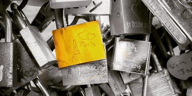 The Love Locks Bridge – for years, lovers have been engraving their initials on locks and tossing the keys into the Seine River, a symbol of their unbreakable love. Over the years, nearly one million locks were padlocked onto the Pont des Arts. Earlier this year, a section of the foot bridge collapsed under the weight – 45 tons of love tokens, all told (about the weight of two dozen cars). #lovelocks #lovelockbridge #pontdesarts #paris #parislife #parisphoto #parisjetaime #seine #bw #blackandwhite #MakeLoveLocks #travelphotography